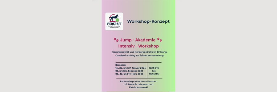 Jump - Akademie. Sprungtechnik und Körperkontrolle im Einklang, Cavaletti als Weg zur feinen Versammlung. Alles zu den den Intensiv - Workshop beginnend am 13.01.2026 findet ihr hier.